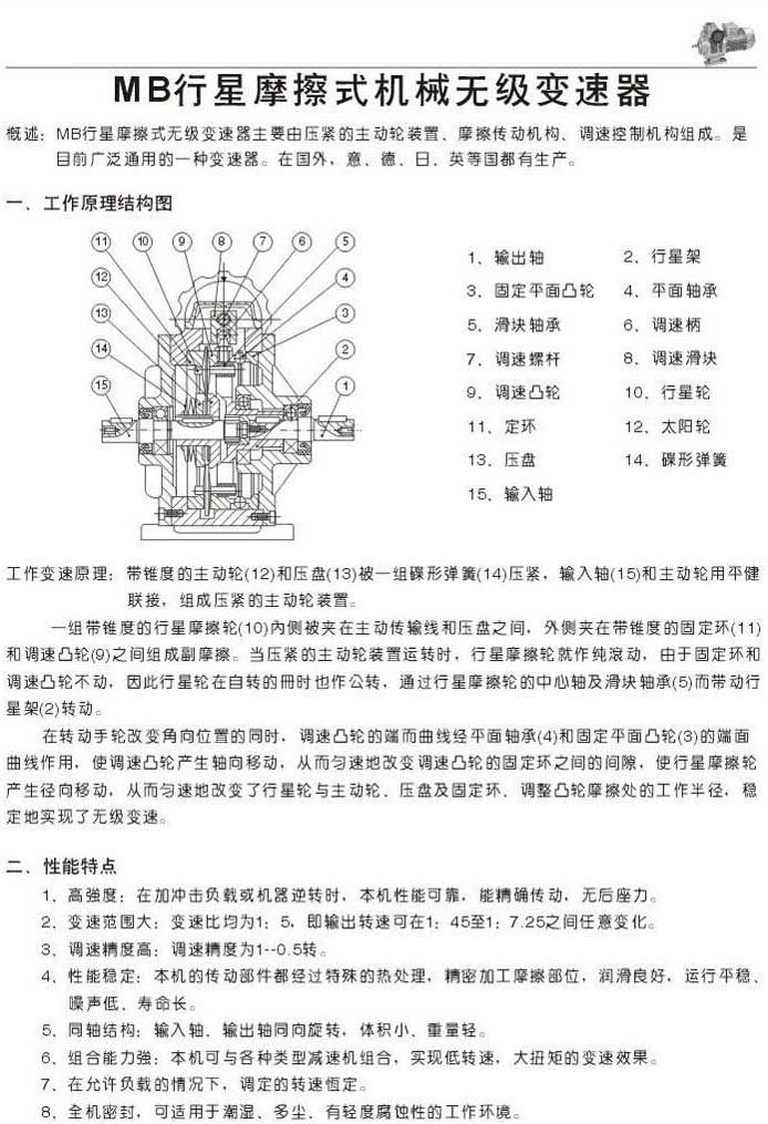 MB行星摩擦式機械無級變速器工作原理和結(jié)構(gòu)圖性能特點