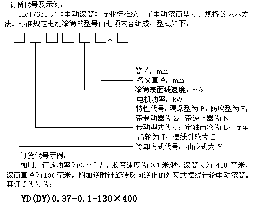 (2).用戶訂購(gòu)逆止電動(dòng)滾筒時(shí),須注明旋轉(zhuǎn)方向,如不注明則為任意方向。其表示方法為在特性代號(hào)后加“S”(表示在電機(jī)引出線一側(cè)觀察,端蓋應(yīng)順時(shí)針旋轉(zhuǎn))或“N”(表示在電機(jī)引出線一側(cè)觀察,端蓋應(yīng)逆時(shí)針旋轉(zhuǎn))。